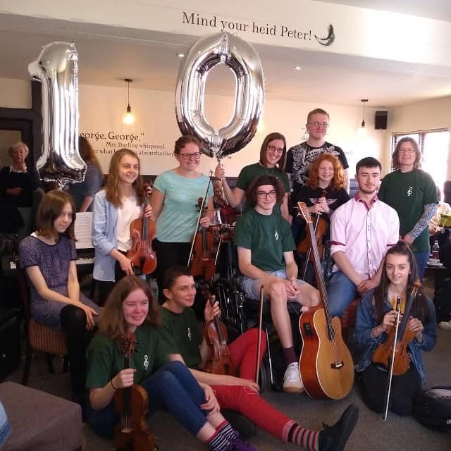 When the YMI funding stopped, the parents of the group members got together to keep it going. It continues as a Council group run by the parents. We celebrated our 10th Anniversary at Kirriemuir Folk Festival in 2019 and we look forward to many more!
